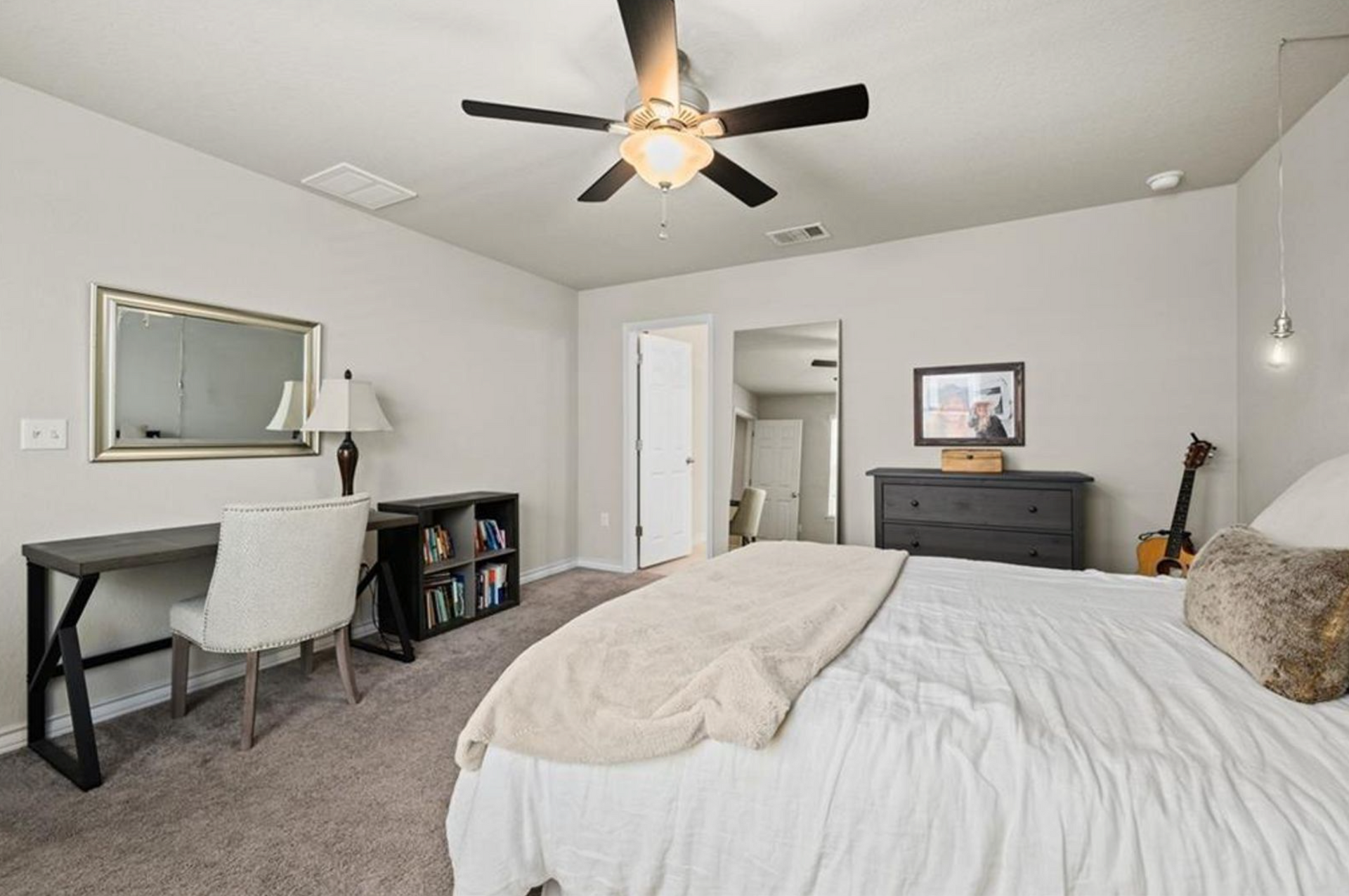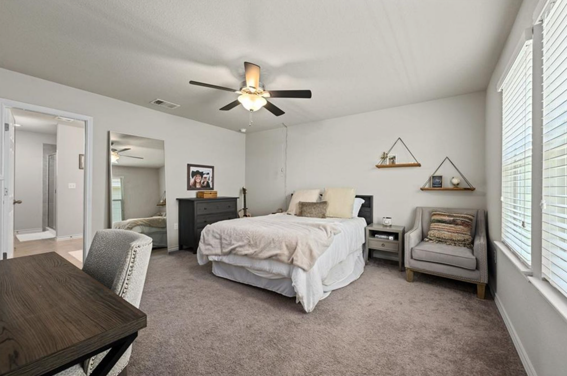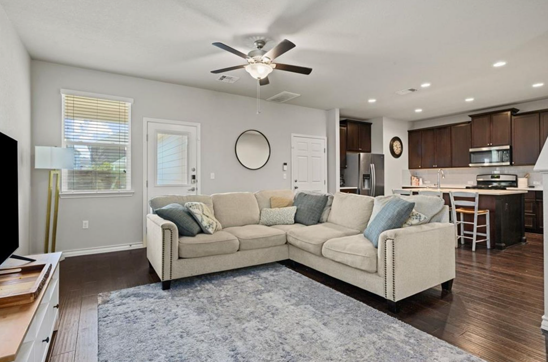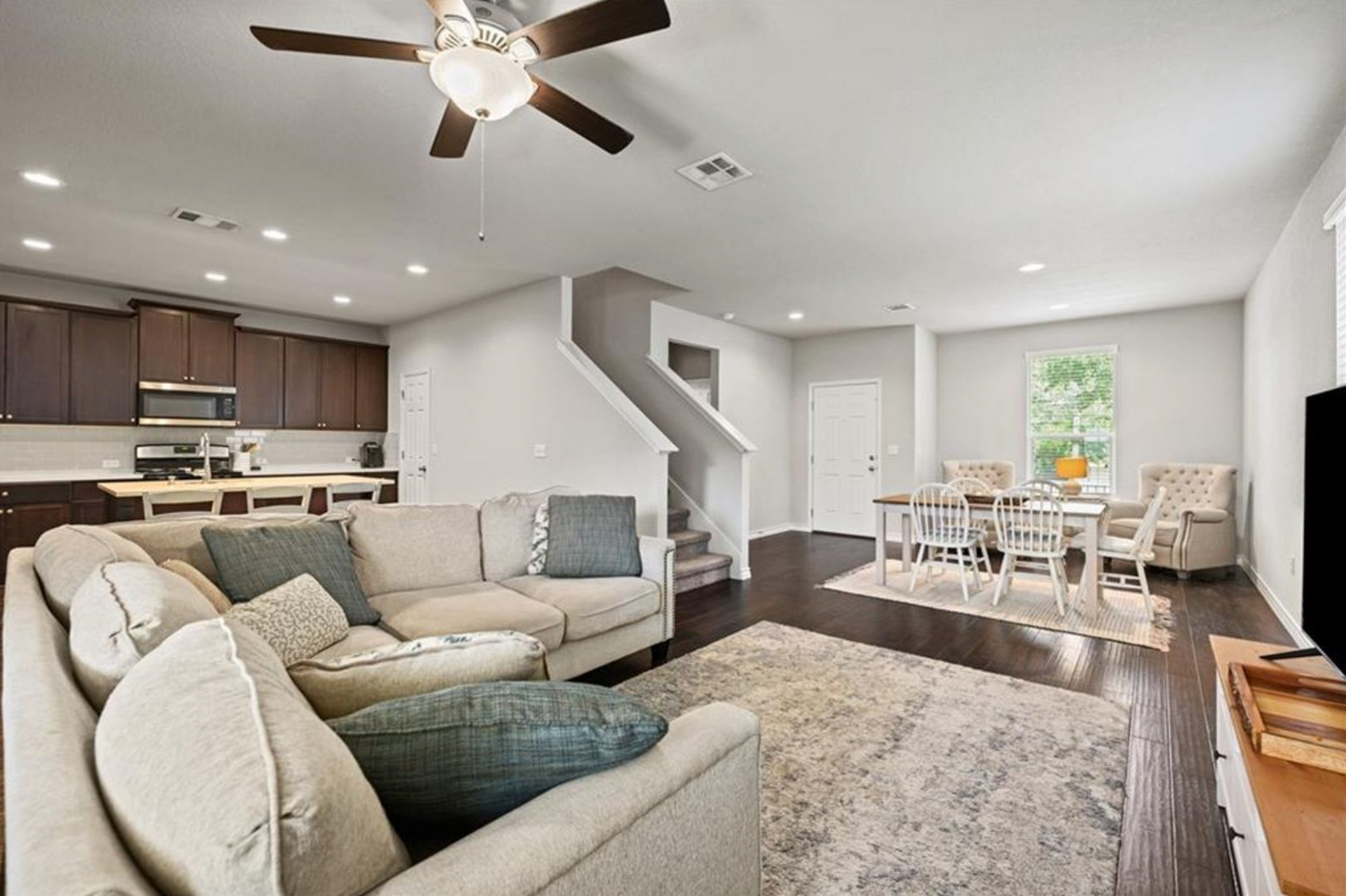 Located just 2 miles East of the Mueller development, this home is ready for is its new resident. The spacious main level floor-plan has an open kitchen / living area with modern fixtures, stainless steel appliances and engineered wood flooring. Also on the main level is a secondary bedroom and full bath. Head upstairs to the primary bedroom and en suite bathroom with dual vanities, walk-in closet and walk-in shower! Two secondary bedrooms and the laundry room are also upstairs. Enjoy privacy from your fenced backyard or head to the community resort style pool, hammock grove, dog park, or take in a movie at the outdoor screening wall. With quick and easy access to Mueller and Downtown, you can enjoy all that Austin has to offer, including top restaurants, farmer’s markets, live music, shopping, and more!