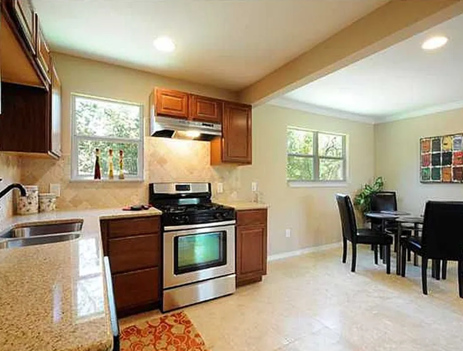 Beautifully renovated house with large lot on top of hill. House was completely renovated with travertine tile and had scraped wood laminate floors, granite counter tops, and stainless appliances. House was taken down to the studs and completely rebuilt with energy efficiency in mind. New insulation, A/C, electrical, double-pane windows, water heater, appliances and more. Large master suite was recently added and features a garden tub with designer tile surround, double vanity, and large walk in closet.