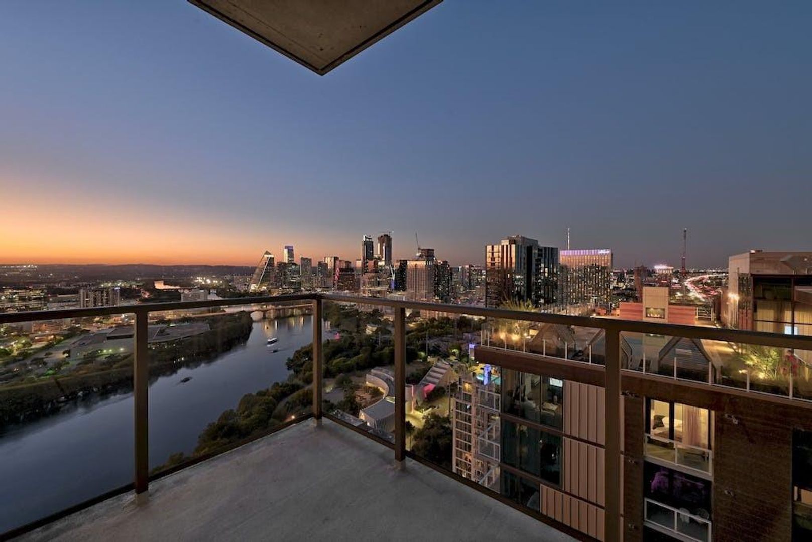Breathtaking corner unit on the 31st floor of Austin's premier new luxury condominiums. Available Now! Located just steps away from sparkling Lady Bird Lake, 44 East offers the very best of downtown lakefront living. Stunning views to the West of Lady Bird Lake and the hill country, and to the North of downtown from floor-to-ceiling windows and a private balcony. The unit boasts high-end custom appliances, gorgeous quartz countertops, hardwood floors, and luxury finishes throughout. With common areas designed by locally revered Michael Hsu Office of Architecture, 44 East offers resort- style amenities including 24-hour concierge, fitness center, resort-style pool, outdoor dining areas with deck/grill, owner's lounge, conference room, dog park, game room & guest suites. Two parking spaces are included. Don't miss this opportunity to be the first to occupy this unit just steps away from the eclectic bars and restaurants on Rainey Street, and adjacent to the 11 miles of hike and bike trail, and Downtown. Video tour available upon request.
